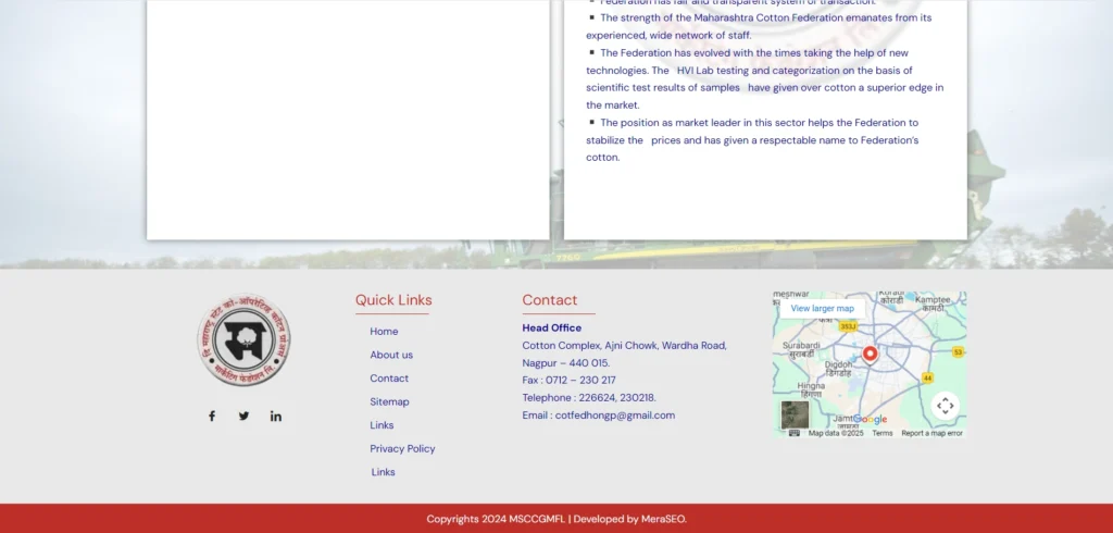 Developed a robust, bilingual, and user-centric WordPress portal for The Maharashtra State Co-operative Cotton Growers Marketing Federation Limited (MAHACOT). The project’s primary goal was to create a centralized platform for disseminating vital information to cotton growers across the state. Key features included integrating a real-time market price display for cotton and related commodities, a secure area for publishing official procurement circulars and schedules, and a farmer grievance redressal mechanism. Focused heavily on data security and accessibility to ensure compliance with government standards and provide reliable service to the agricultural community. The site was optimized for mobile access, recognizing the primary way farmers access digital information.